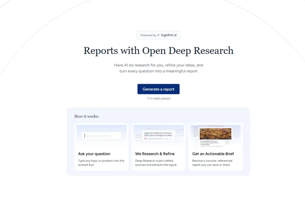 你是否曾为撰写一份高质量的研究报告而花费大量时间查找资料、整理信息?现在,你可以借助 Open Deep Research —— 一个由 Together AI 开源的 AI 驱动研究平台,只需提出一个问题,即可获得一份结构完整、来源可追溯、图文并茂的人工智能研究报告。