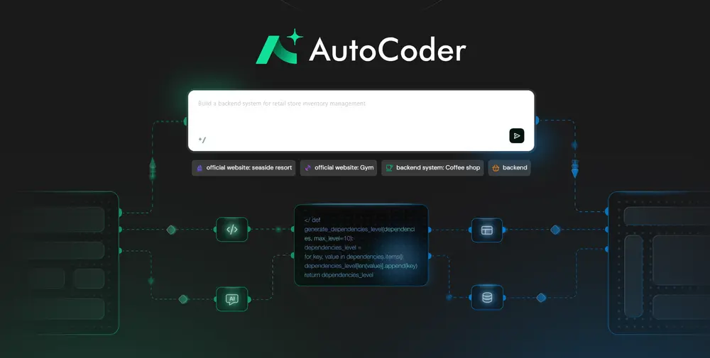AutoCoder 是一个由 AI 驱动的全栈开发平台,通过自然语言提示简化构建、运行、编辑和部署 web 应用的流程,,包括前端、后端和数据库,特别适合非技术用户。