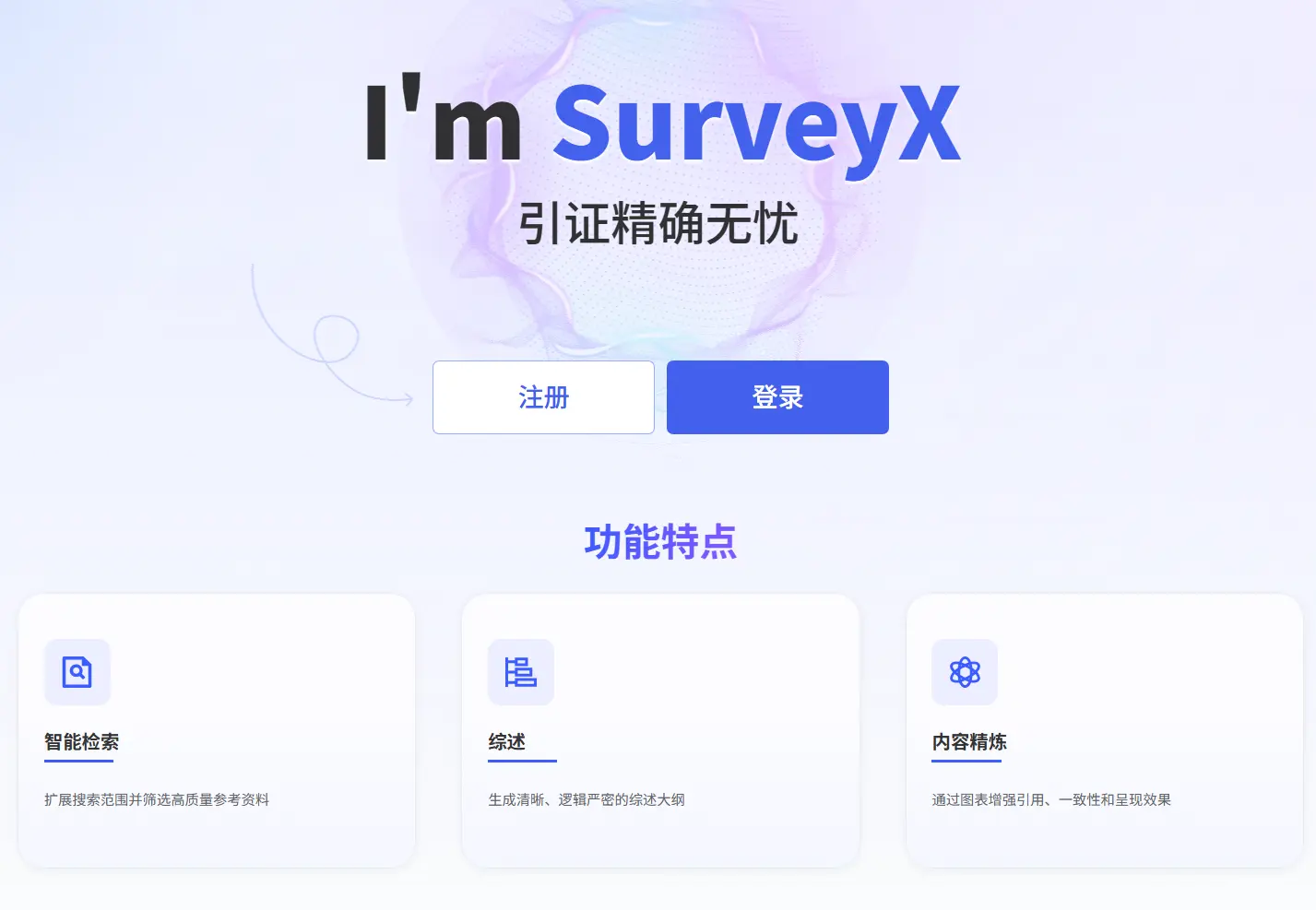 SurveyX 支持双通道检索,让你既不遗漏已有资料,也不错过最新成果: