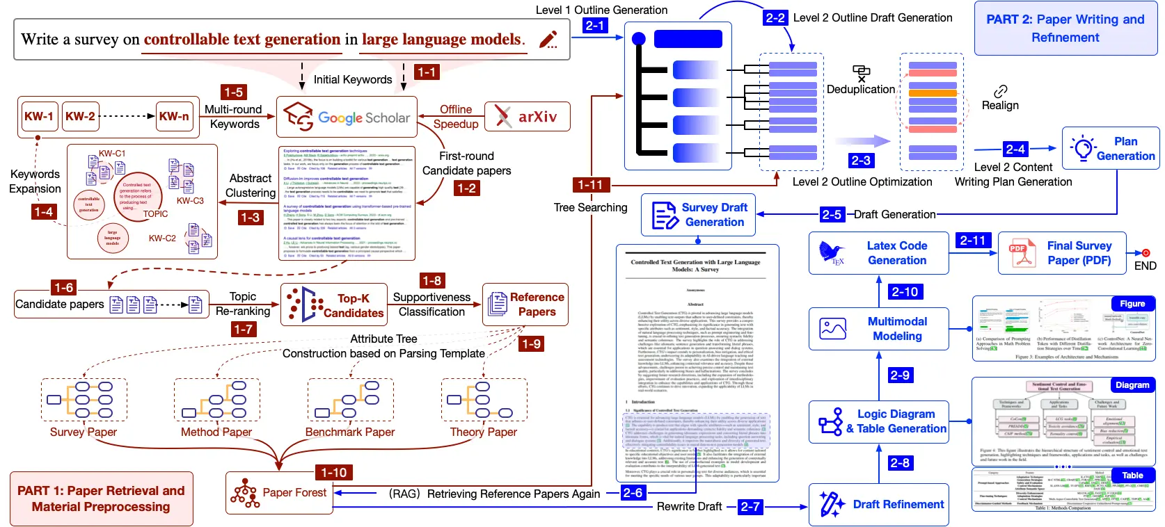 - RAG 辅助写作:利用属性森林提升信息密度,辅助生成更专业的综述内容。