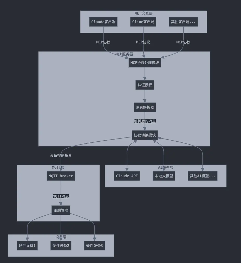 它通过将 Model Context Protocol (MCP) 与 MQTT 协议结合,打通了 AI 与硬件之间的通信桥梁。这意味着,你可以用自然语言来控制家中的智能设备、机器人或其他嵌入式系统,实现真正意义上的“AI + 物联网”。