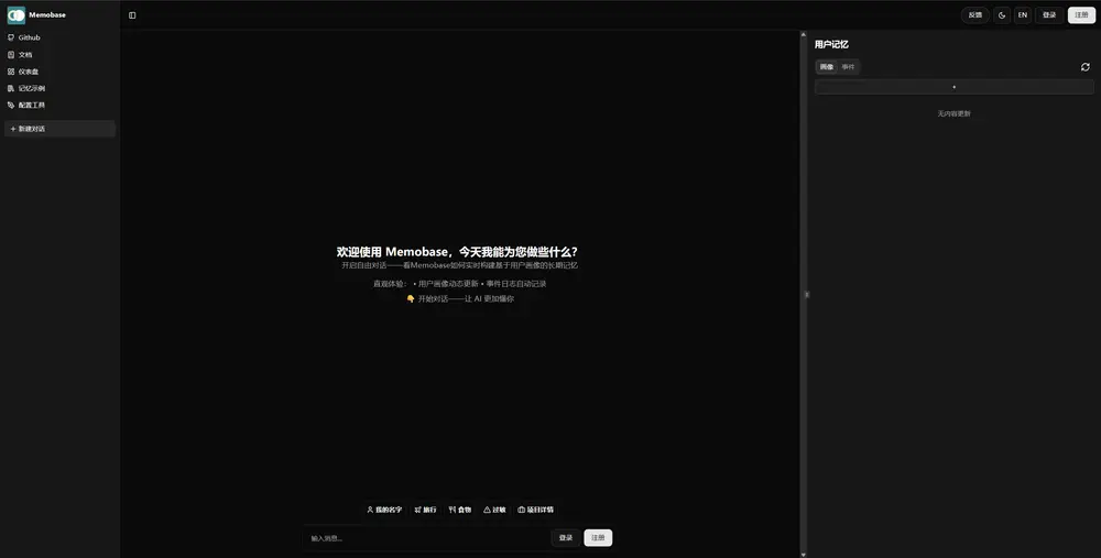 Memobase 是一个面向用户的结构化记忆数据库,它帮助 AI 持续积累关于用户的事实、偏好和行为轨迹,形成动态演进的用户档案。