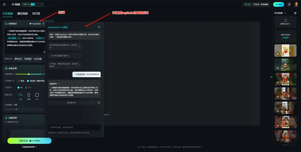 AI 视频生成: 支持文生视频和图生视频,用户输入文本描述或上传参考图片,即可生成高质量视频,视频分辨率可达 1080P,帧率高达 30fps,确保流畅性。 提供视频续写功能,可生成长达 3 分钟的创意内容,适合叙事性较强的视频创作。 模型能够模拟真实世界的物理特性,如重力、碰撞等,使生成的视频内容更加真实可信,例如生成一个人在戈壁沙漠中骑马飞奔的场景,背景为美丽的夕阳,具有电影级别的视觉效果。